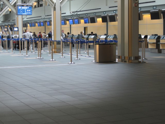 up to security. The lines at the first counters were quite long but again a fast track was offered and the lines at the far end were much shorter. A fellow passenger had mentioned this while we were in the train from the satellite terminal to the main terminal. So I walked over to the end and had only five passengers ahead of me and was through security quite fast.